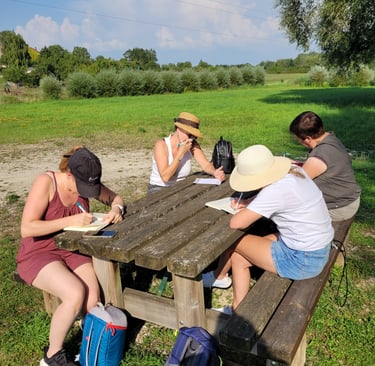 Le mouvement et les paysages stimulent la créativité et ouvrent l’imaginaire, tout en invitant à une reconnexion aux sensations et à l’instant présent. En sortant du cadre classique de l’atelier d’écriture, cette proposition permet d’aborder l’écriture autrement, de manière plus libre et intuitive.